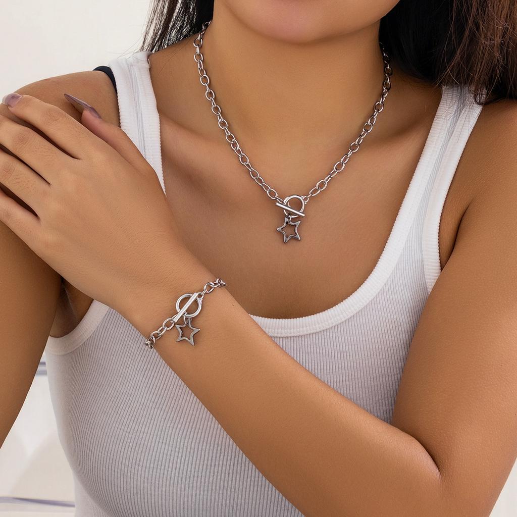 Accessories, simple sweet and cool titanium steel star neck necklace, versatile thin chain geometric metal item decoration