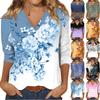 Women's Casual And Fashionable Flower Printing V-Neck Top With Seven Quarter Sleeves