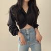 Hong Kong Retro V-Neck Slim Long Sleeve Shirt for Women - Spring Style Short Top