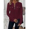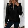 Elegancka damska bluza z długim rękawem zapinana na zamek, z kołnierzem bejsbolowym i imitowanymi kieszeniami - Teksturowy splot warkoczowy