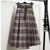 Damska jesienno-zimowa spódnica midi o nieregularnym kroju A, wełniana krata, wysoki stan, pogrubiona spódnica parasolowa