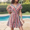 Modne damskie sukienki letnie, wiosenne, w paski, z krótkim rękawem i dekoltem POLO