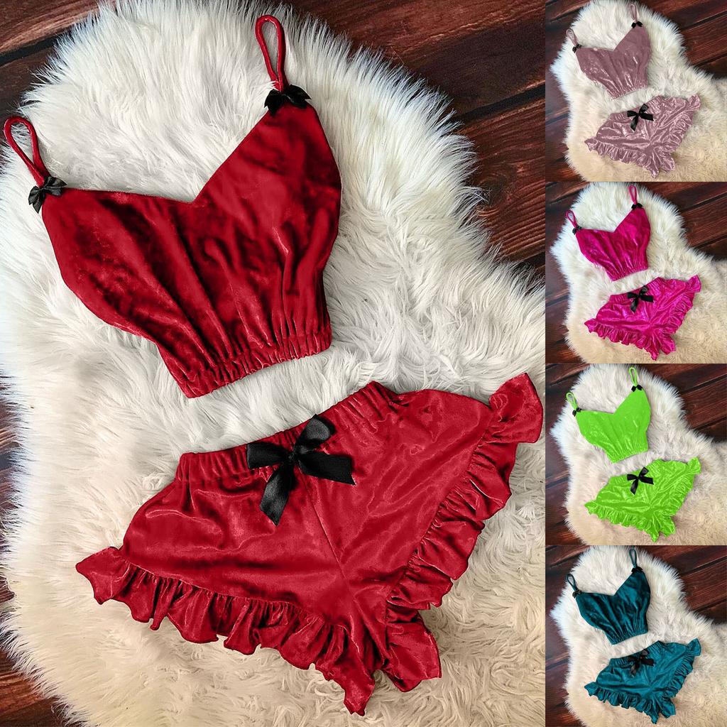 Moda damska Casual Solid Color V-neck Sling Tops Bielizna domowa Piżamy