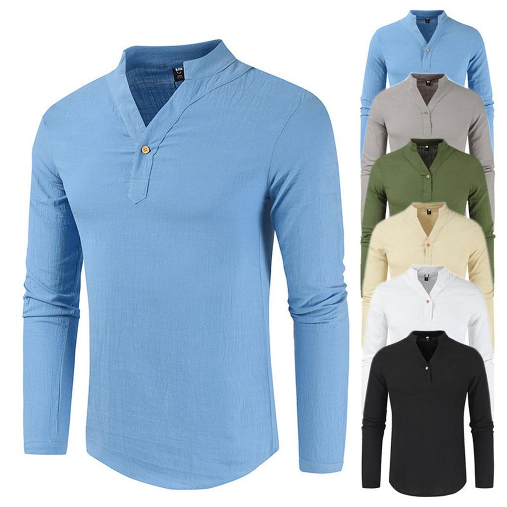 Letnia nowa młodzieżowa koszula męska z dużym dekoltem w szpic, w jednolitym kolorze, luźna koszula męska