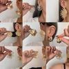 Exaggerated personality double-layer five-petaled flower earrings, simple retro striped leaf fringed earrings