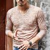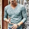 Męska bluzka z długim rękawem, solidnym dekoltem w serek i długim rękawem
