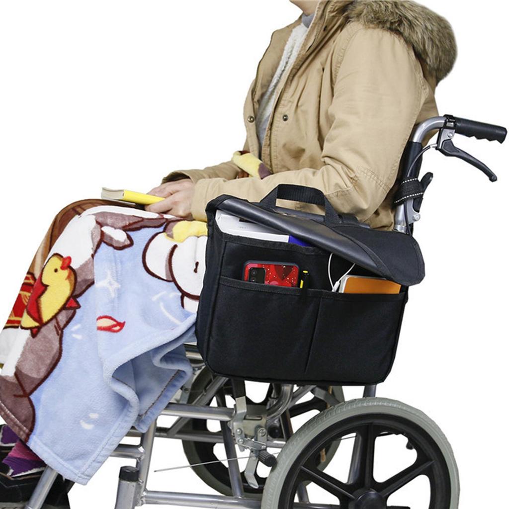 Organizer na podłokietnik wózka inwalidzkiego, doskonały wybór do uporządkowania telefonu, portfela, przekąsek, leków, etui na okulary i innych niezbędnych rzeczy w zasięgu ręki