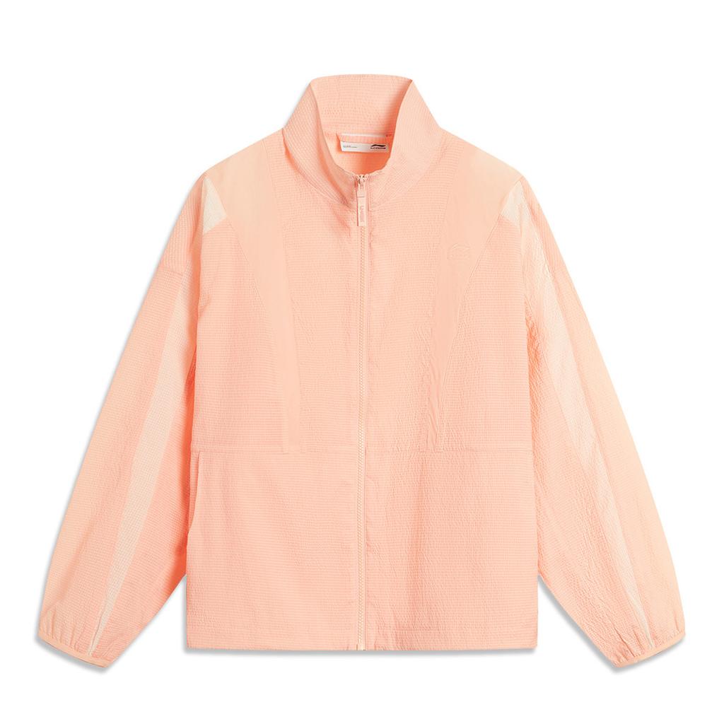 Seria mody sportowej Li Ning Wiatrówka Kardigan Długi rękaw Stójka Wiatroszczelna Luźna Codzienna Tkana Kurtka Damskie kurtki Pomarańczowy Różowy AFDU670-1