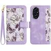 Etui na Honor 200 5G z PU skóry z kwiatowym wzorem, z przegródkami na karty