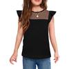 Letnie koszulki z plisowanymi rękawami dla dzieci i dziewcząt, codzienne topy, przezroczyste siateczkowe koszulki z krótkim rękawem