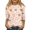 Bluzka dziecięca z rękawem 3/4, luźny t-shirt z nadrukiem i okrągłym dekoltem