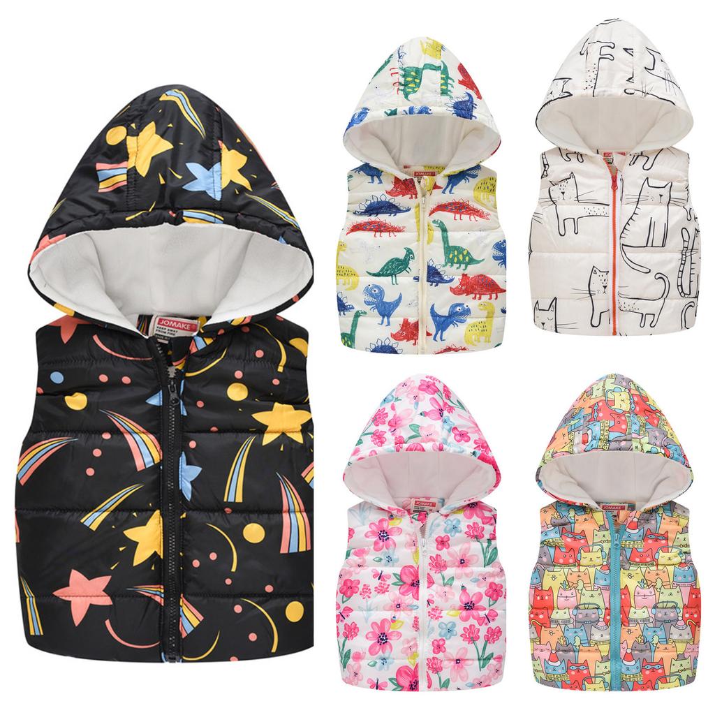 Maluch dziewczynek zimowy kreskówka wiatroszczelny płaszcz z kapturem ciepła odzież wierzchnia kamizelka