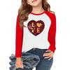 Dziewczęce koszulki z długim rękawem Love na Walentynki, dziecięce jesienne topy, basicowe koszulki z okrągłym dekoltem 5-14L