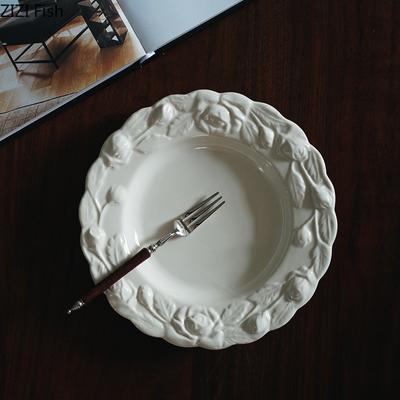 Ceramiczny talerz sałatkowy z wytłaczanym kwiatem Talerz deserowy do popołudniowej herbaty i dim sum Naczynia do gotowania w restauracji Kreatywny talerz na stek Zastawa stołowa