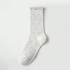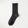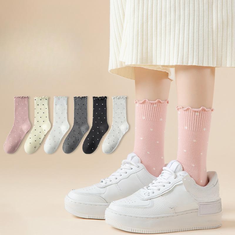Female Spring and Autumn Style Wooden Ear Edge Polka Dots Cotton Sweet Long Tube Pile Socks