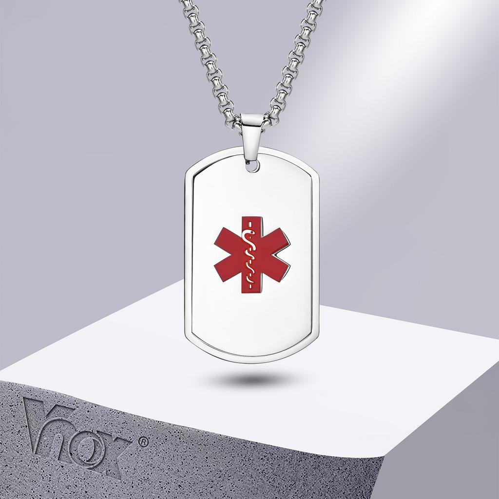 Vnox Naszyjnik ID Ostrzeżenia Medycznego dla Mężczyzn Kobiet, Antyalergiczny Ze Stali Nierdzewnej Wisiorek z Nieśmiertelnikiem, Prezent na Dzień Ojca, Urodziny