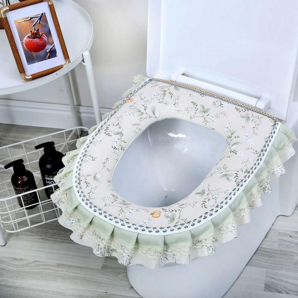 Toilet Seat Zipper, Large Caliber Seat Cushion Warm Seat Cushion All Cotton Lace Washable and Waterproof