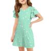 Dziewczęca sukienka z falbankami - Sukienka letnia z nadrukiem z okrągłym dekoltem