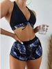 Damski dwuczęściowy zestaw bikini z blokami kolorów i nadrukiem liści, 2022