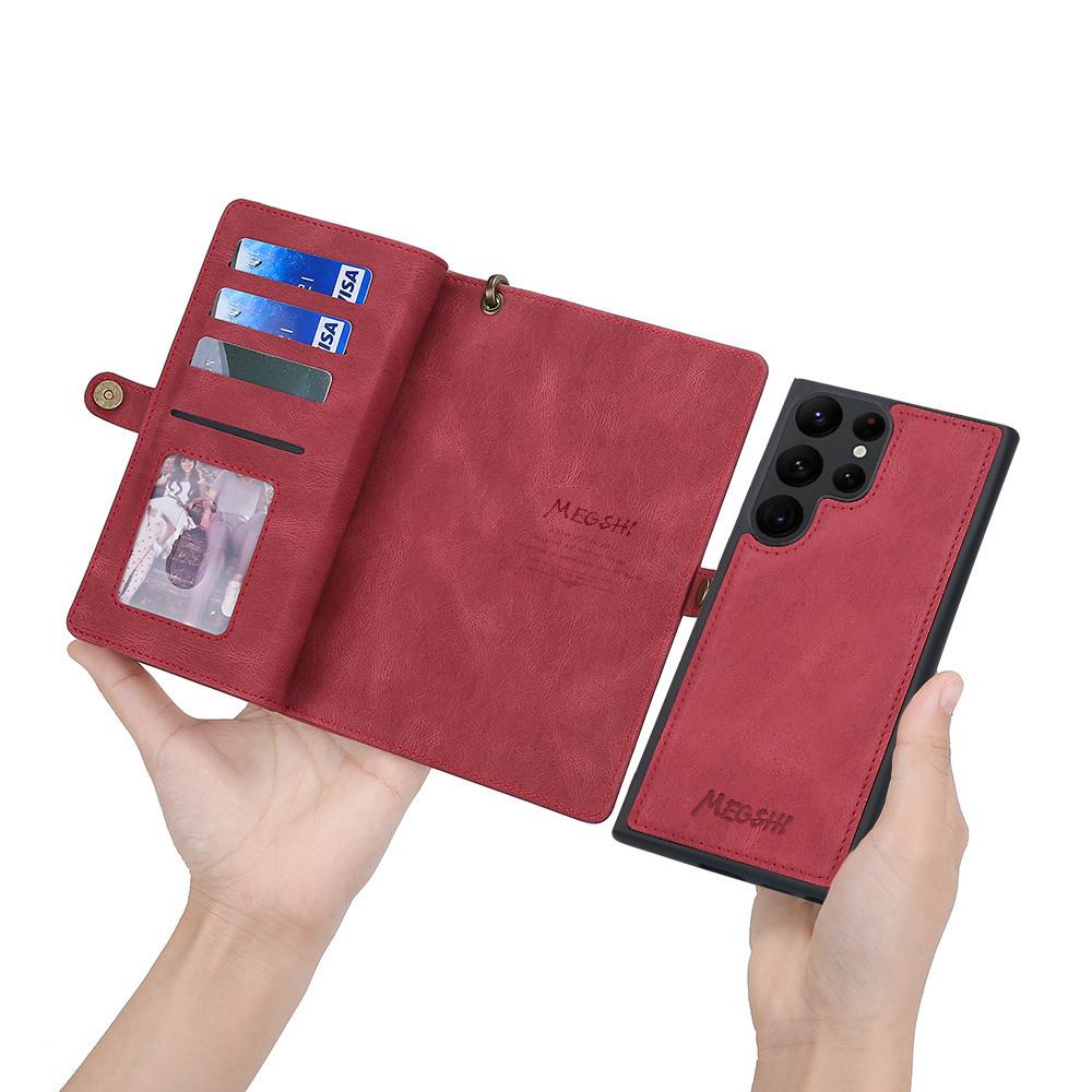 MEGSHI 017 Series For Samsung Galaxy S24 Ultra Case Zipper Wallet Detachable Letaher Phone Bag