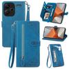 Dla Xiaomi Redmi Note 13 Pro+ 5G Etui portfelowe na zamek błyskawiczny ze smyczą, z kwiatowym nadrukiem, skórzane PU, pokrowiec na telefon