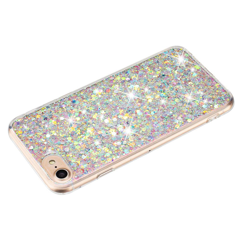 Dla iPhone 6/7/8/SE (2020) (2022) Etui na telefon z TPU z epoksydową powłoką, odporne na wstrząsy, z brokatowym pudrem dekoracyjnym, pokrowiec na telefon