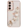Etui na Samsunga Galaxy A55 5G Elektroplaterowane TPU Pokrowiec na Telefon Wzór Serca z Łańcuszkami na Nadgarstek