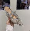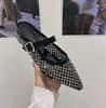 Retro pointed metal buckle rhinestone bag head half slippers women wear fashionable cool slippers