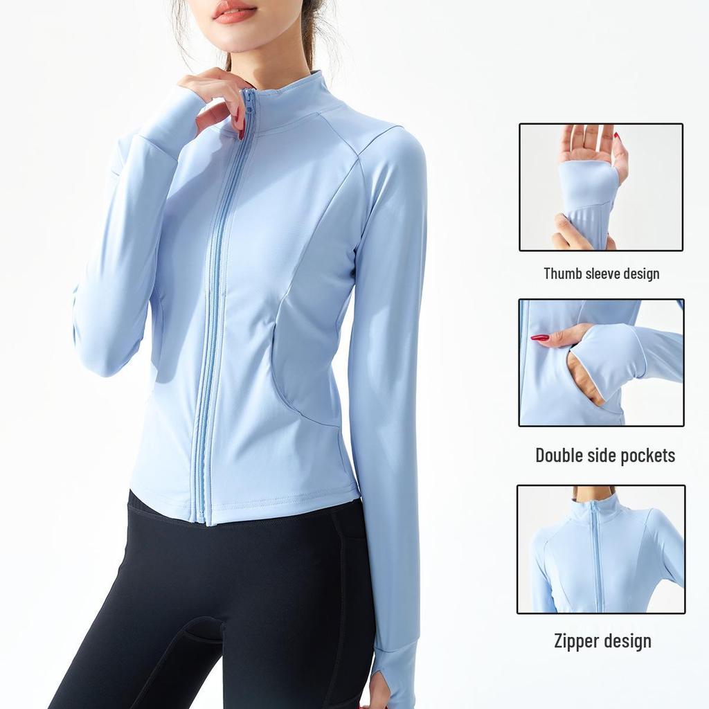 Damska kurtka do jogi szybkoschnąca: Dopasowany kardigan zapinany na zamek ze stójką do biegania i treningu