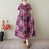 Krótki rękaw Plus size Bawełna Len vintage kwiatowy nowość sukienki dla kobiet casual luźna długa letnia sukienka