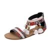 Letnie sandały damskie Duże płaskie sandały Zapinane na tylny zamek i frędzle Sandały z odkrytymi palcami