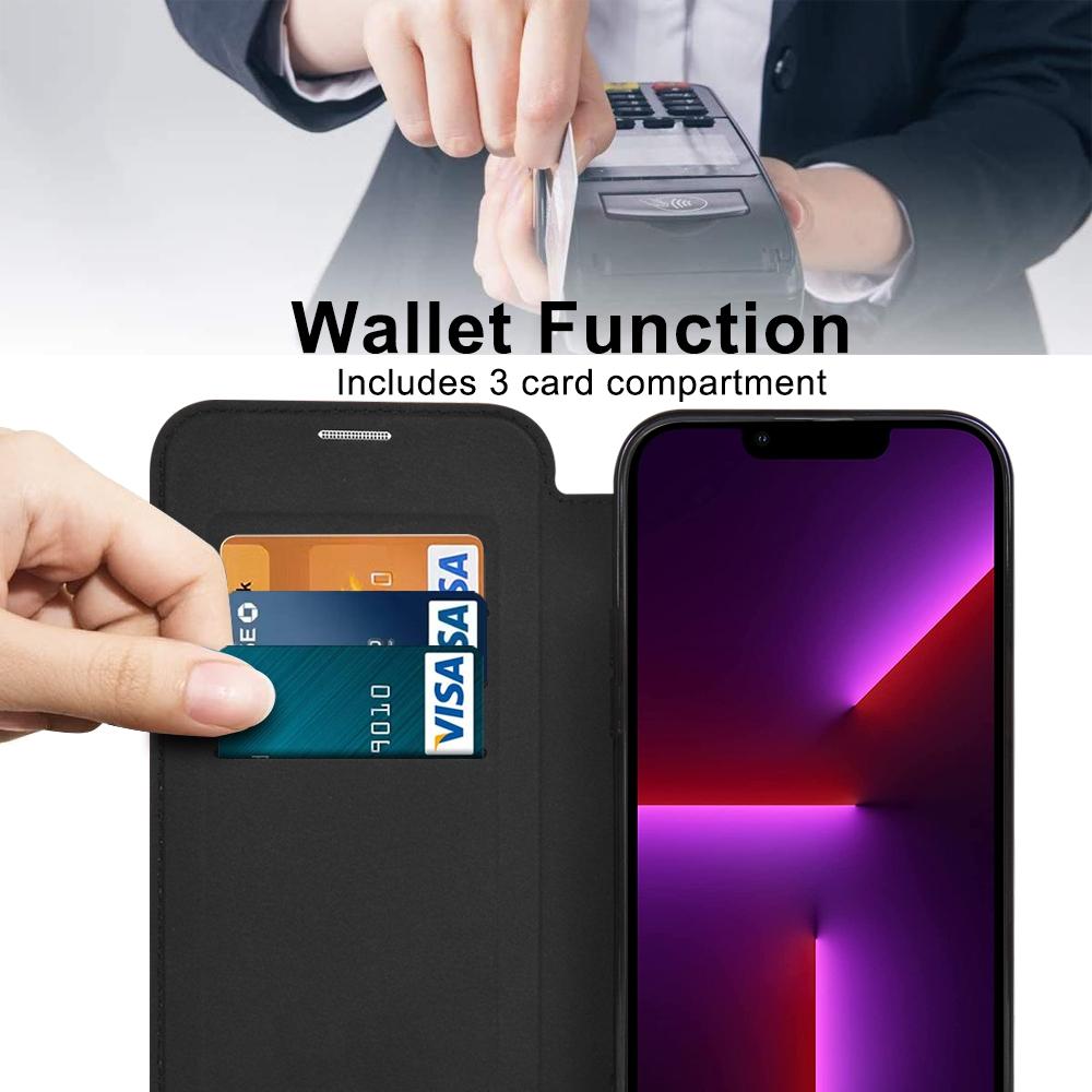 Dla iPhone 13 Pro 6,1 cala Kompatybilny z MagSafe Blokowanie RFID Przegródki na karty TPU amortyzujący wstrząsy Elektroplaterowany Przezroczysty tył Etui z klapką z folią na obiektyw