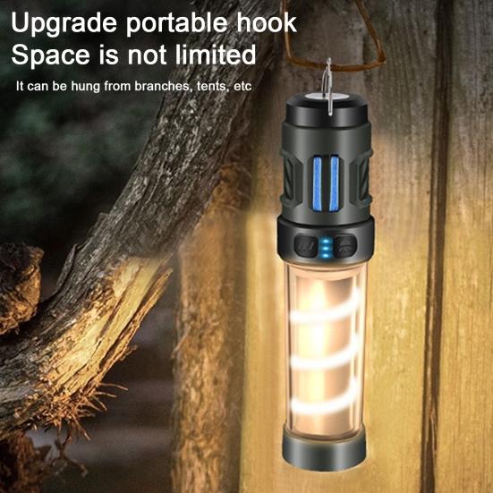 Portable Power Bank: Wyposażona we wbudowany power bank, ta lampa kempingowa służy również jako przenośna ładowarka do Twoich urządzeń, zapewniając łączność podczas przygód na świeżym powietrzu lub w sytuacjach awaryjnych.