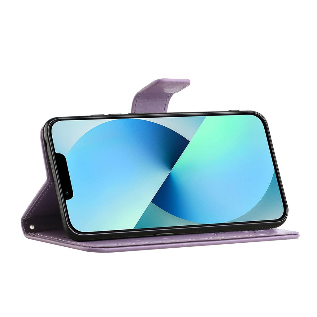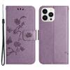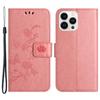 Butterfly Flower Imprinted Leather Case for iPhone 15 Pro,Stand Waller Protective Phone Cover