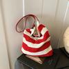 Nowa torba tote niszowy design kontrastowy kolor paski dziergana torba prosta ażurowa przenośna torba na ramię kobiety