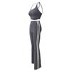 Damski Zestaw Spodnie Micro Flare do Jogi w Bloki Kolorystyczne i Top