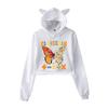 Modna bluza crop top z nadrukiem Eda Sheerana w stylu kawaii, zabawna bluza krótka z uszami kota, z kapturem, typu pulower, damska, streetwear