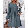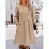 Damski sweter z okrągłym dekoltem i kieszeniami, sukienka w kształcie litery A z długim rękawem