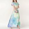 Women's Spring And Summer Casual Fashion Tie-Dye Printed Dress V-Neck Short Sleeve Dress