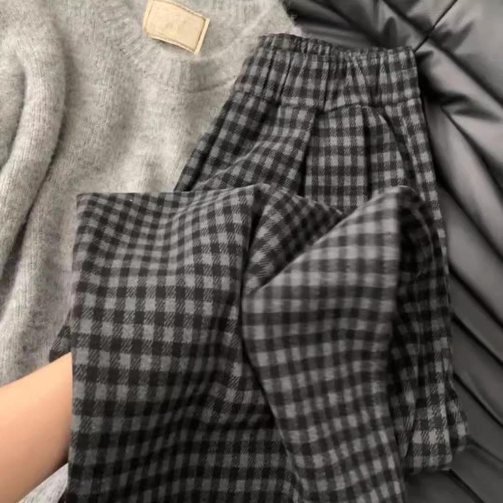 These stylish wide-leg pants are designed for the modern woman seeking both comfort and retro charm in the cooler months. Crafted with a unique blend of spandex and plaid woolen fabric, they promise a comfortable fit and a touch of sophisticated style. The high-waisted design and fleece lining make them perfect for autumn and winter, while their sportive style ensures versatility for any casual outing. Whether you're heading out for a leisurely stroll or a relaxed day out, these pants combine warmth, style, and ease effortlessly.