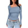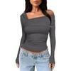 Damska bluzka z długim rękawem i plisowaną ozdobną bluzką na jedno ramię, dopasowana koszula