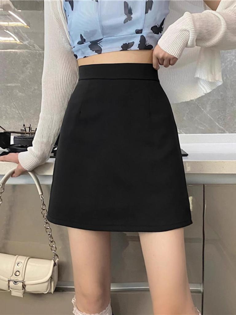 Autumn 2025 Women's Petite Black High-Waisted Bodycon Midi Skirt