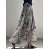 Letnia spódnica damska w stylu vintage chińskim, drukowana w efekt halo atramentowym, spódnica do połowy ciała, elastyczny pas, długa spódnica