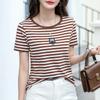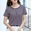Letnia damska koszulka z krótkim rękawem i okrągłym dekoltem zapinana na zamek