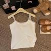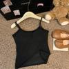 Damski top kamizelka koronkowy w stylu koreańskim z blokami kolorów – jesienny, dopasowany, ciepły i bez rękawów