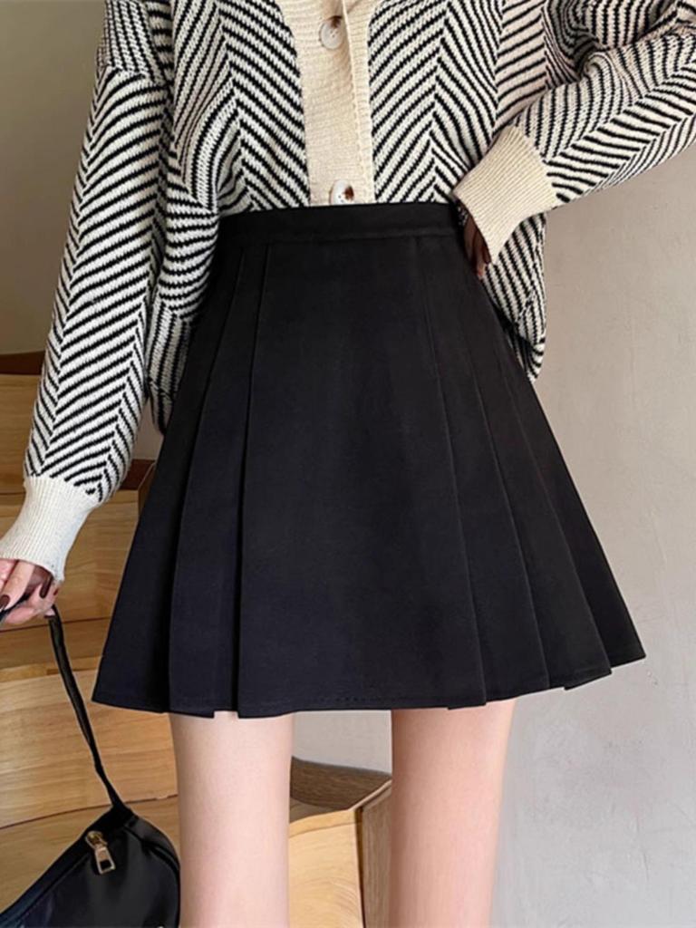 Embrace a sporty yet elegant look this spring with this women's academy-style ensemble. This outfit features a solid black sweater and a high-waisted A-line pleated skirt, both crafted from premium polyester for a comfortable fit. The design exudes a chic and sophisticated vibe, making it perfect for versatile styling. Whether you're heading to work or enjoying a casual day out, this set is sure to make a stylish statement.