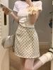 Damska spódnica midi z wysokim stanem w retro kropki na rok 2024 - Wyszczuplający, wszechstronny fason A na lato