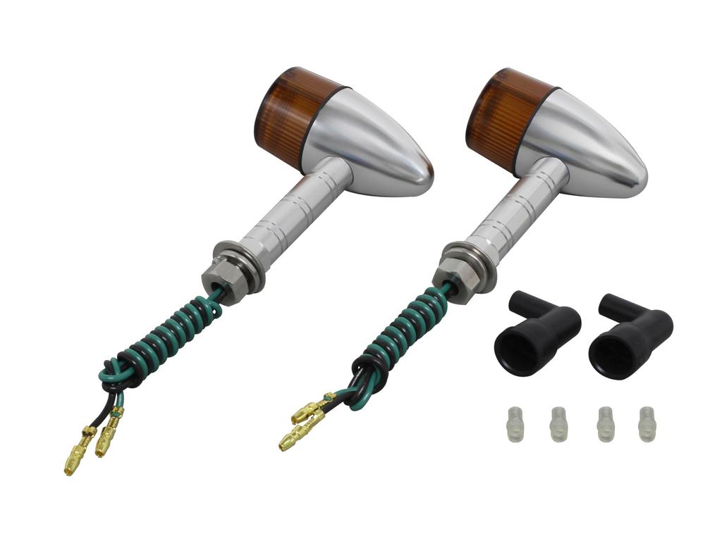 POSH FAITH Motorcycle Parts Aluminum Machined Blinker Bullet Type Super Long Stay Single Bulb Not 2 Pieces M10 Silver Lens (Bulb Included) Body/Orange