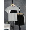 Summer Fashion Trend Youth Casual Wear, Crewneck Short-sleeved T-shirt & Sports Shorts Three-color Patchwork Two-piece Set