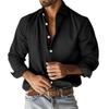 Męska koszula z długim rękawem z klapami w jednolitym kolorze Męska koszula z długim rękawem w stylu casual